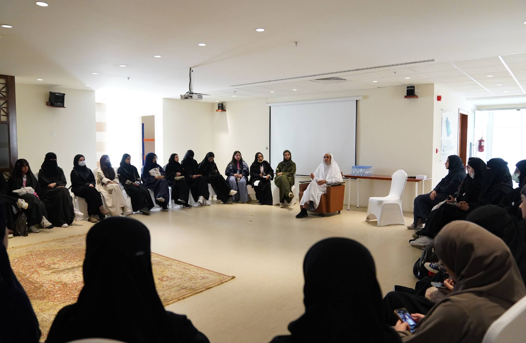 زارت الطالبات مكتبة المركز حيث التقين مدير إدارة المكتبات والمعلومات د. مصباح بوزنيف للتعرف على المهام الرئيسة للمكتبة، ومن ضمنها حفظ المخطوطات وترميمها. وأبدت الطالبات إعجابهن بمقتنيات المكتبة، وتكامل أنشطتها الثقافية والعلمية وخدماتها للباحثين وطلاب العلم.