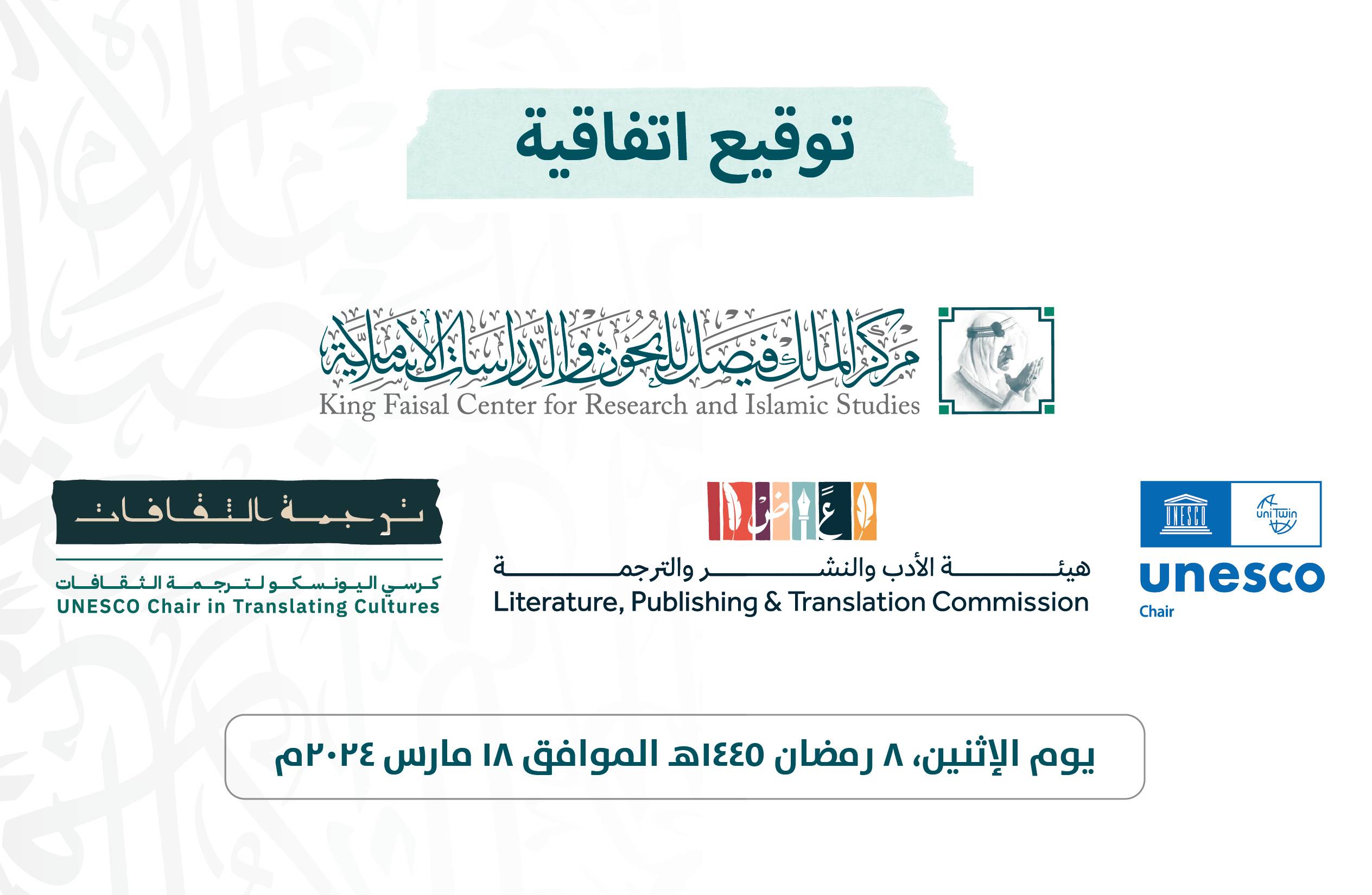 وقَّع مركز الملك فيصل للبحوث والدراسات الإسلامية يوم الإثنين، ٨ رمضان ١٤٤٥هـ الموافق ١٨ مارس ٢٠٢٤م، اتفاقية مع منظمة الأمم المتحدة للتربية والعلم والثقافة (اليونسكو) لإنشاء كرسي اليونسكو لترجمة الثقافات بدعم من هيئة الأدب والنشر والترجمة، وقّع الاتفاقية كلٌّ من الأمين العام لمركز الملك فيصل صاحبة السمو الملكي الأميرة مها بنت محمد الفيصل، وسعادة المديرة العامة لليونسكو أودري أزولاي. وترأس كرسي اليونسكو لترجمة الثقافات الدكتورة منيرة الغدير.