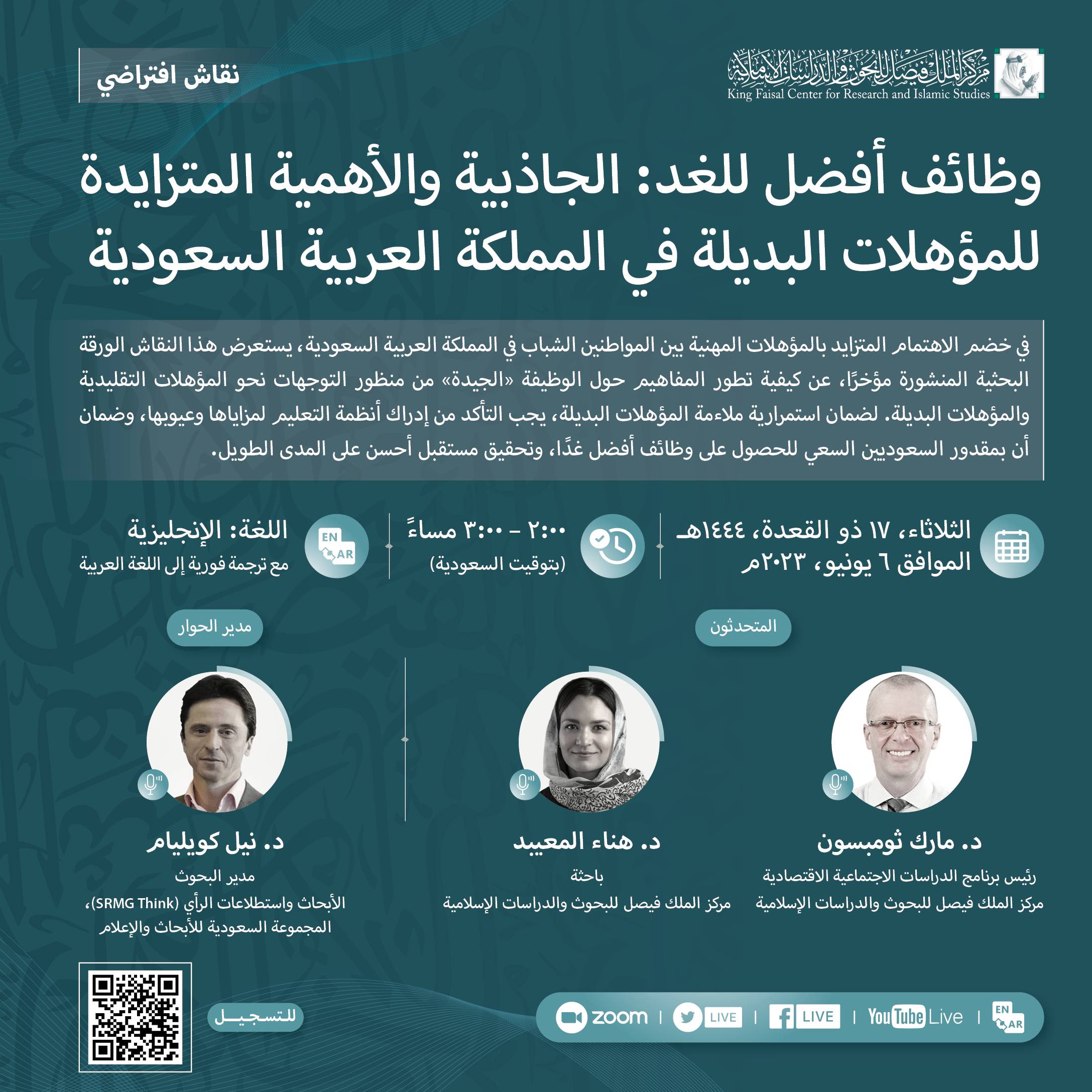 نقاش افتراضي: وظائف أفضل للغد: الجاذبية والأهمية المتزايدة للمؤهلات البديلة في المملكة العربية السعودية...