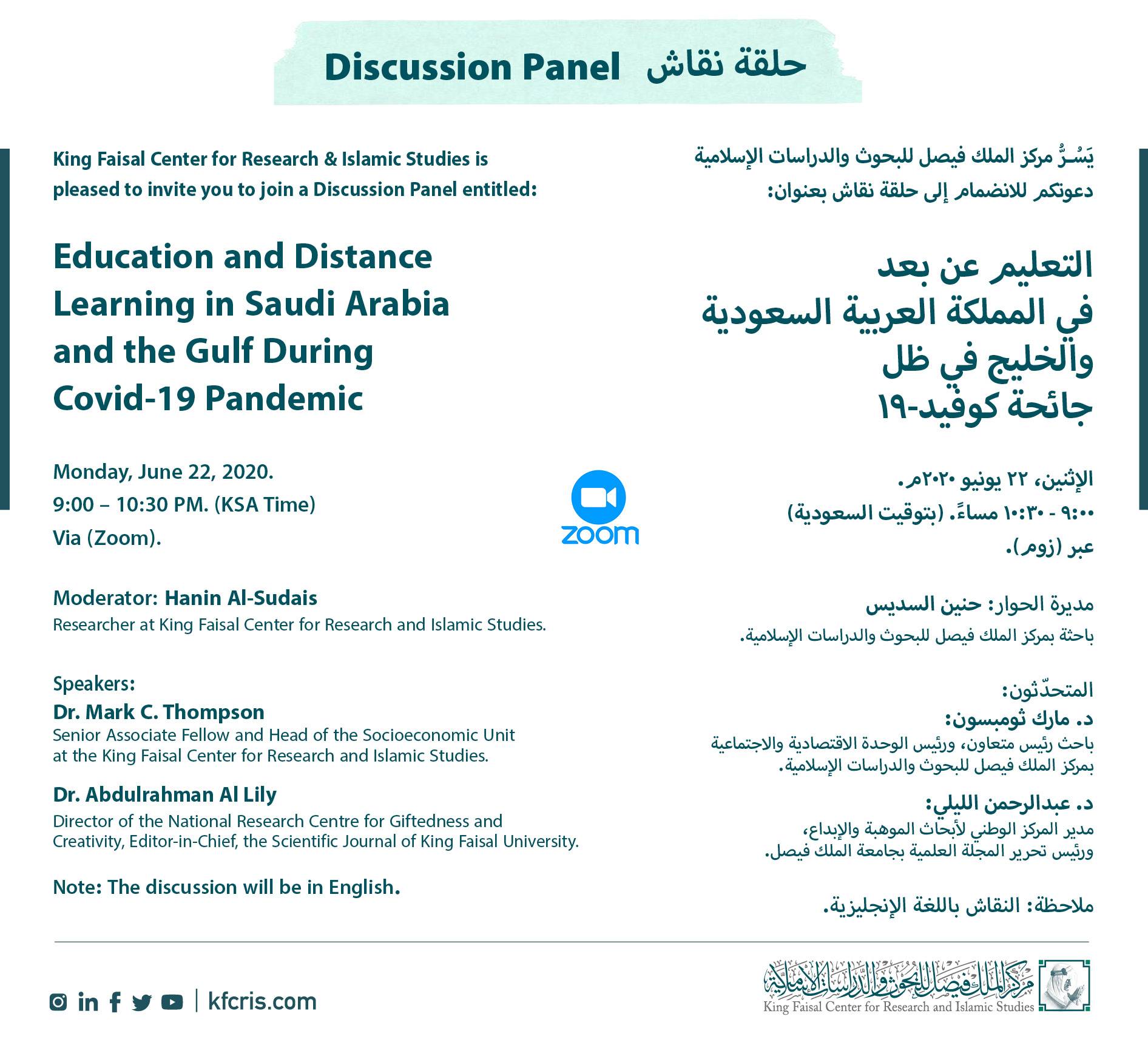 حلقة نقاش: التعليم عن بعد في المملكة العربية السعودية والخليج في ظل جائحة كوفيد-١٩...