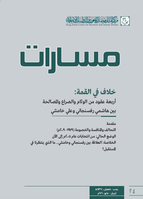 عنوان العدد [٢٤] من مسارات: خلاف في القمة أربعة عقود من الوئام والصراع والمصالحة بين هاشمي رفسنجاني وعلي خامنئي