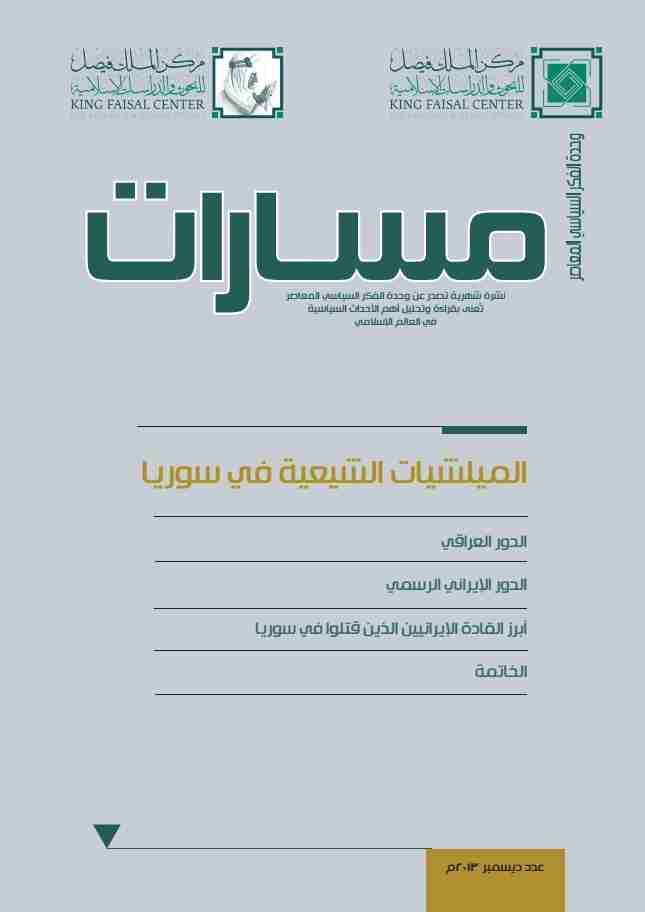 من أبرز الظواهر التي صاحبت الثورة السورية هو عودة الجهاد العالمي الشيعي إلى الساحة السياسية الدولية، وذلك ضمن ميليشيات من شتى بلدان العالم قدمت إلى سوريا لدعم نظام الأسد وقمع الثورة الشعبية. النسبة الكبرى من هؤلاء المقاتلين قدموا من العراق ولبنان، وبعضهم قدم من إيران وباكستان وأفغانستان واليمن وإفريقيا. ولم تحظَ هذه الميليشيات باهتمام الدارسين والإعلاميين، الذين توجه أكثرهم إلى دراسة القاعدة وأخواتها الموجودين على الأراضي السورية. في هذا العدد من مسارات سيتم تسليط الضوء على أهم هذه الميليشيات الشيعية، وعلى دور الحكومتين الإيرانية والعراقية في دعم هذه الميليشيات وتسهيل تنقلها