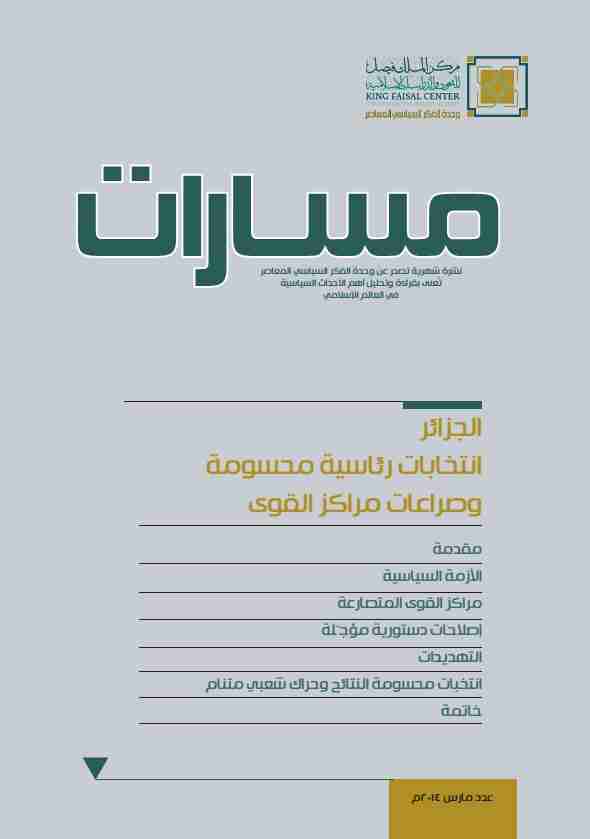 تعيش الجزائر هذه الأيام على وقع تجاذبات وصراعات بين مراكز القوى، وتنامي حالات الفرز والاصطفاف السياسي بين المقاطعين للانتخابات والداعين للمشاركة فيها، ويتناول هذا العدد من مسارات الاستعدادات التي تشهدها الجزائر للانتخابات، وردود الفعل التي أثارها ترشّح الرئيس بوتفليقة لولاية رابعة رغم تدهور وضعه الصحّي. هذا إلى جانب الدور الذي قامت به أجهزة الاستخبارات في كواليس السباق الرئاسي. كما تم تحليل وجهة نظر بعض الأقطاب السياسية الجزائرية بخصوص هذه الانتخابات وتقييمها لحكم بوتفليقة طوال ١٥ عاماً. هذا إلى جانب التصدّي لظهور حراك شعبي بمناسبة هذه الاستحقاقات، ومحاولة الأحزاب الاستفادة منه وتوجيهه.