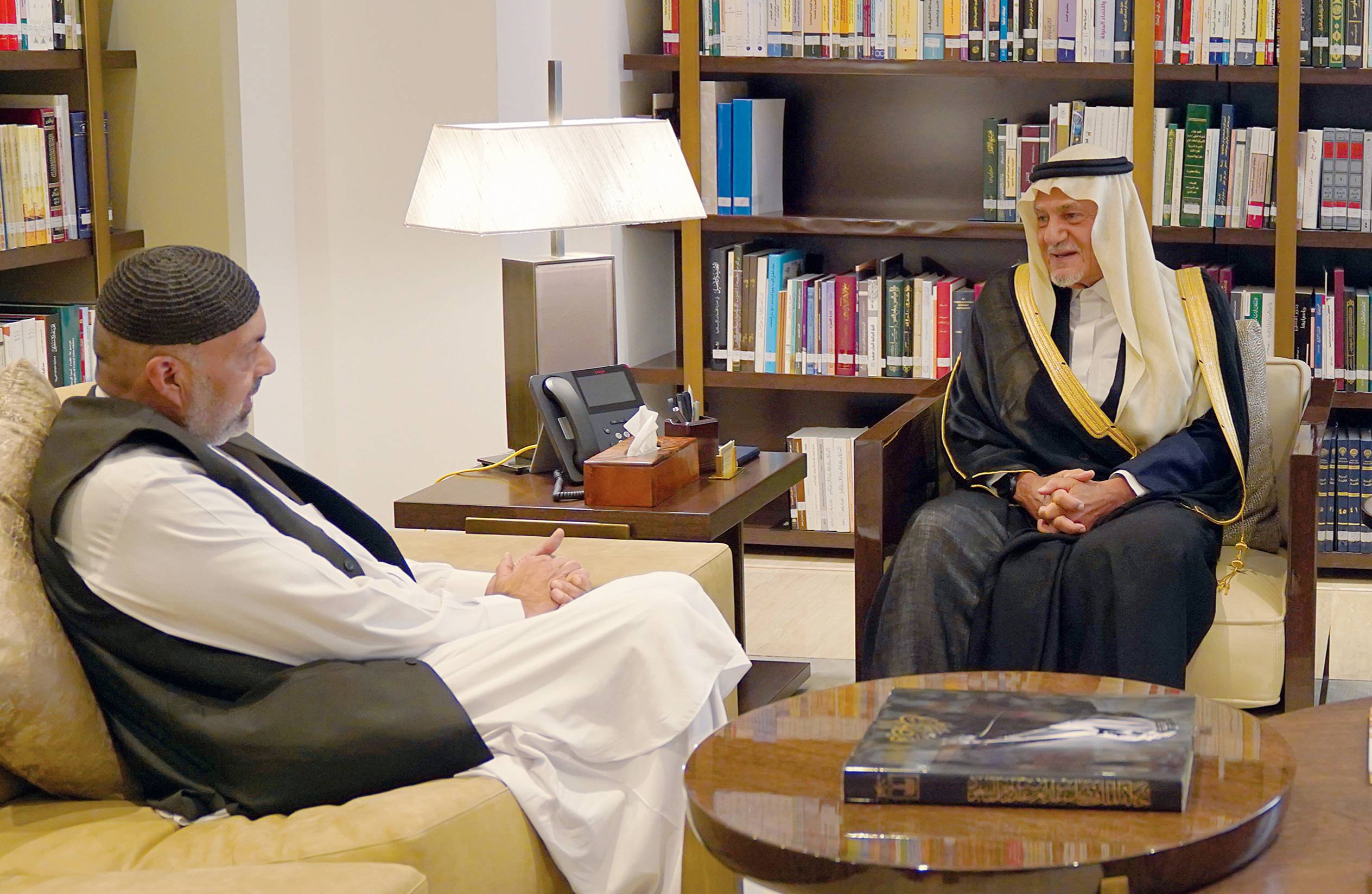 费萨尔国王学术与伊斯兰研究中心主席图尔基·费萨尔亲王在其办公室会见阿富汗末代国王之孙穆斯塔法·本·纳迪尔·沙阿·本·穆罕默德·扎西尔·沙阿。
