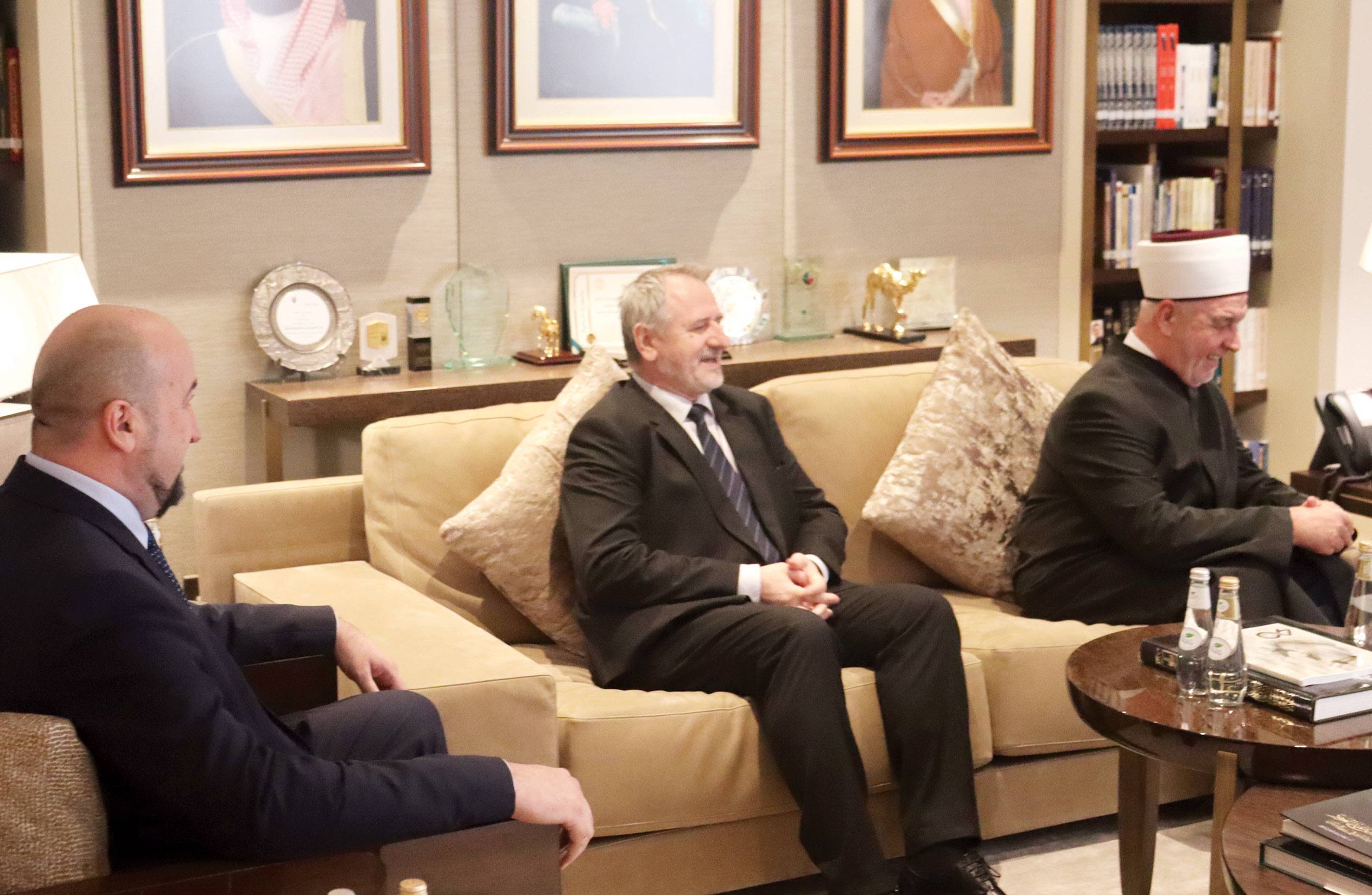 费萨尔亲王在其办公室会见波黑首席学者兼大穆夫提侯赛因·卡瓦佐维奇博士、波黑驻沙特大使拉兹姆·丘利奇先生、波黑前驻沙特大使穆罕默德·尤西奇先生。