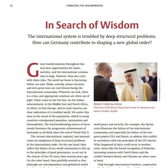 His Royal Highness (HRH) Prince Turki AlFaisal is Founder and Trustee of the King Faisal Foundation and Chairman of the King Faisal Center for Research and Islamic Studies.