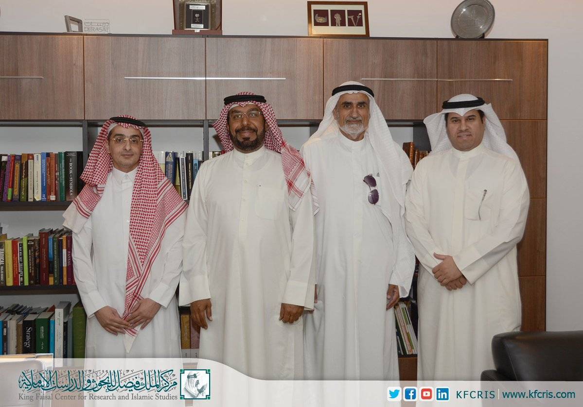 The Secretary-General of King Faisal Center Saud Al-Sarhan receieved in his office in Riyadh on Tuesday a delegation from the National Security Service in Kuwait, including Abdulaziz Abdullah Al-Salem, Head of Research and Strategic Studies, and Arif Jassim Al-Akhwand, Director of Strategic Centers. The meeting reviewed the efforts and research activities of the Center and its interest in strengthening cooperation with various local and international institutions and organizations and exchanging friendly views on a number of current issues.