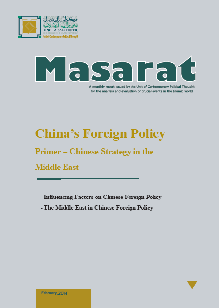 This issue of Masarat provides a general outline of China’s foreign policy strategy in the Middle East. This will be accomplished by examining the factors and structural legacies influencing China’s foreign policy making process. The purpose of this is to place China’s strategy – in whatever arena – within a context that will elucidate its conduct and policy choices. The p