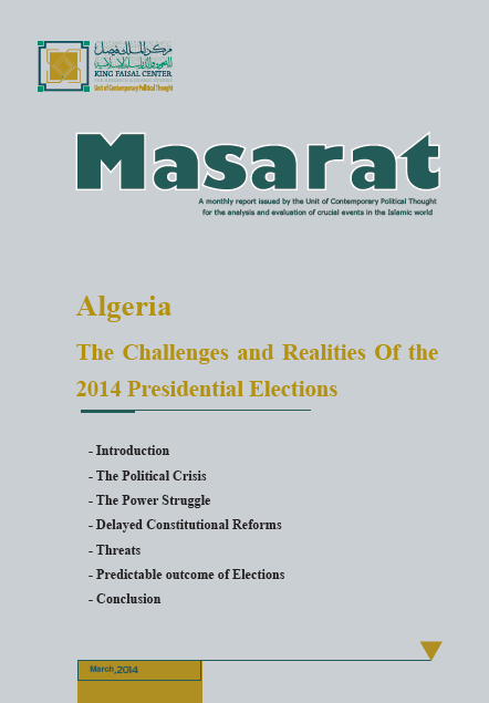 Algeria is undergoing conflict between its loci of power in light of growing discord between those who call for a boycott of the elections and those who advocate participation in voting. This issue of Masarat will shed light on preparations taking place in Algeria for the elections and reactions to President Bouteflika’s decision to run for a fourth term despite his deteriorating health. It will also discuss the role the intelligence service has playe