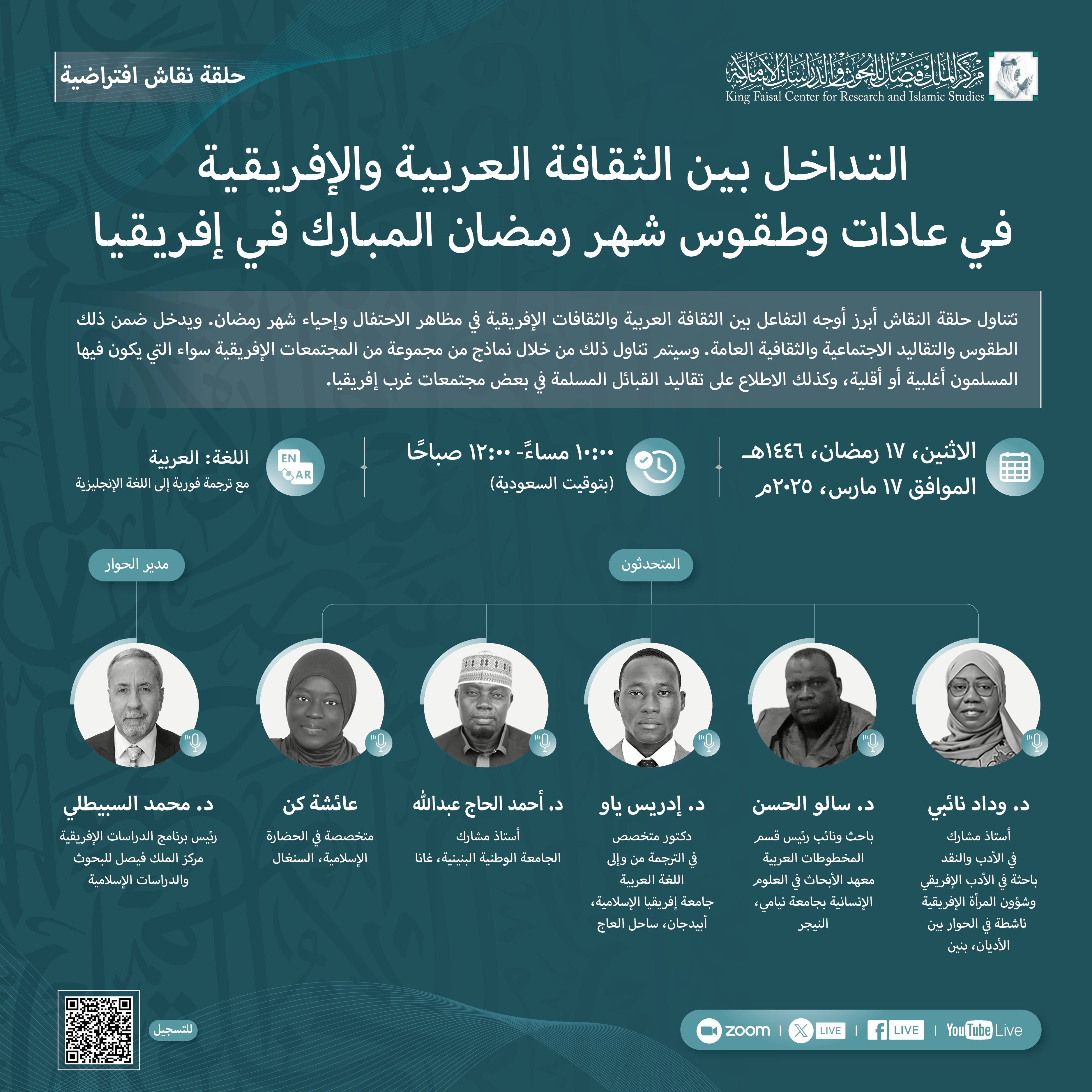 حلقة نقاش افتراضية: التداخل بين الثقافة العربية والإفريقية في عادات وطقوس شهر رمضان المبارك في إفريقيا...