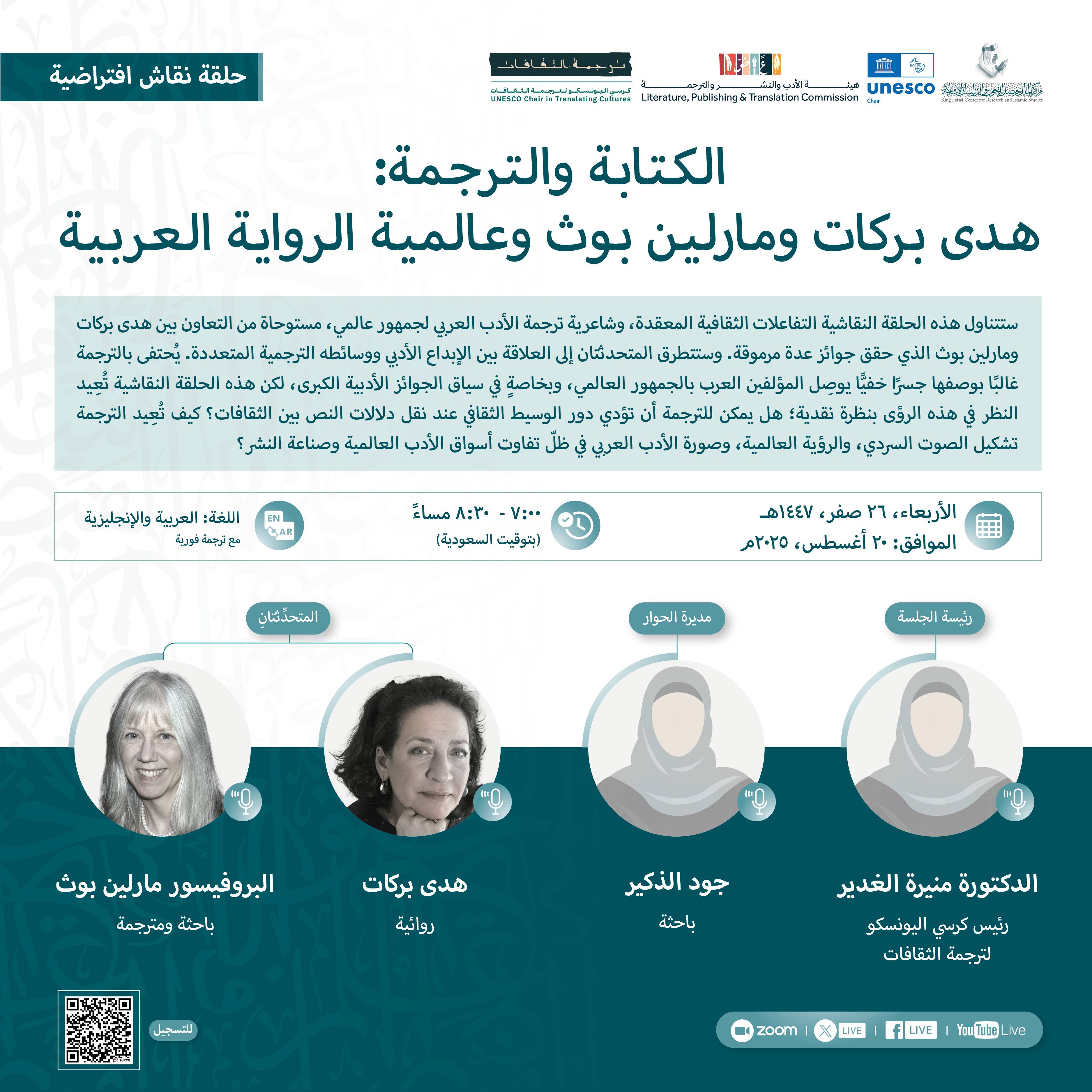حلقة نقاش افتراضية: الكتابة والترجمة: هدى بركات ومارلين بوث وعالمية الرواية العربية...