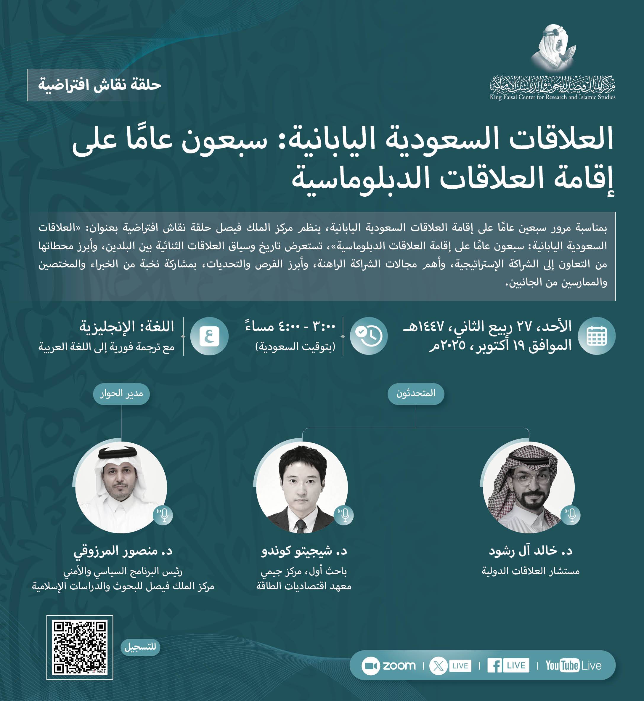 حلقة نقاش افتراضية: العلاقات السعودية اليابانية: سبعون عام على إقامة العلاقات الدبلوماسية...