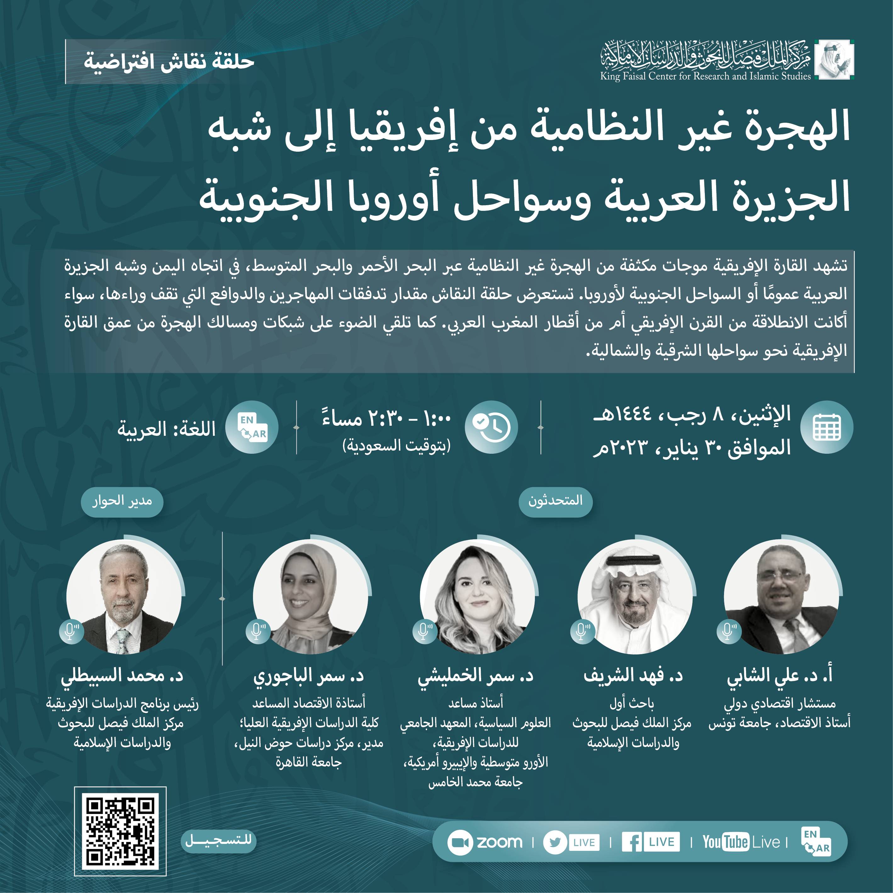 حلقة نقاش افتراضية: الهجرة غير النظامية من إفريقيا إلى شبه الجزيرة العربية وسواحل أوروبا الجنوبية...