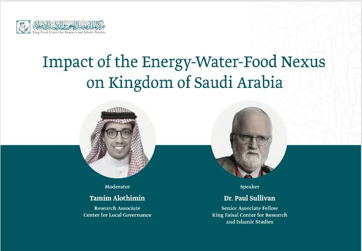 محاضرة افتراضية: تأثير الترابط بين الطاقة والمياه والغذاء في المملكة العربية السعودية...