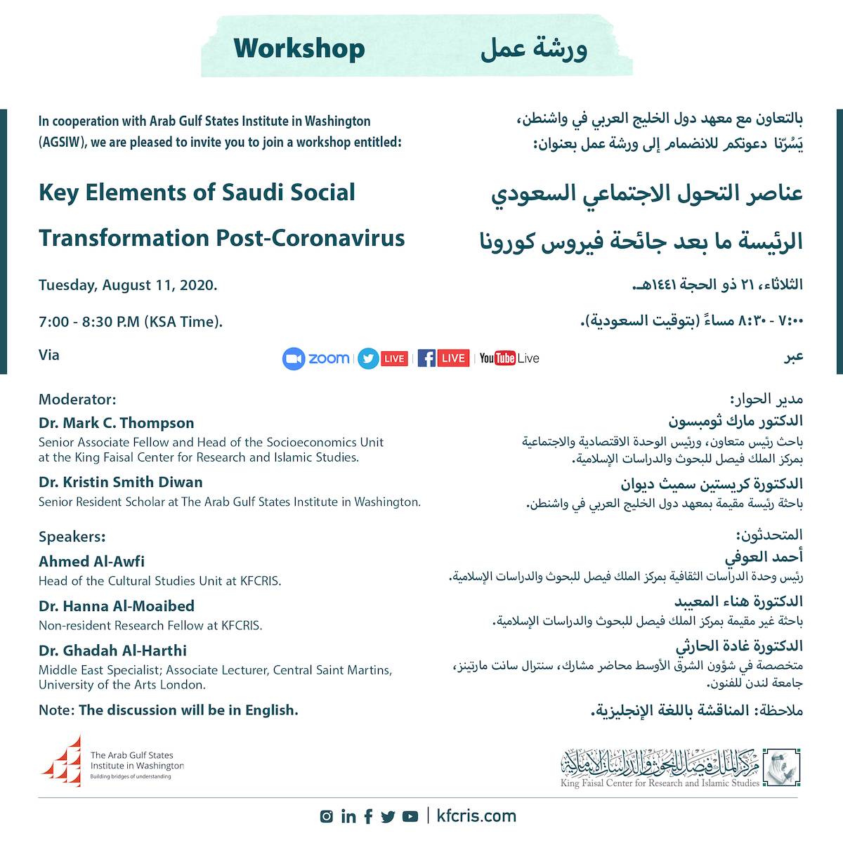 ورشة: عناصر التحول الاجتماعي السعودي الرئيسة ما بعد جائحة فيروس كورونا...