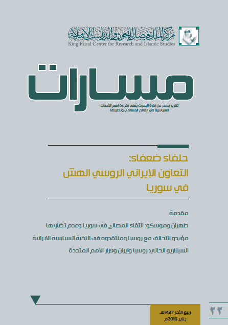 تهدف هذه الورقة (تاريخ نشرها ربيع الآخر ١٤٣٧ه. الموافق لشهر يناير عام ٢٠١٧ م.) إلى مناقشة طبيعة الارتباط غير المتماثل للعلاقات بين روسيا وإيران؛ إذ وجدت كلتا الدولتين نفسها على الخطّ ذاته فيما يتعلّق بمجموعة متعددة من النزاعات توافقت فيها مصالحهما الوطنية، ومن هذه النزاعات الحرب الأهلية الحالية في سوريا. وتناقش ال