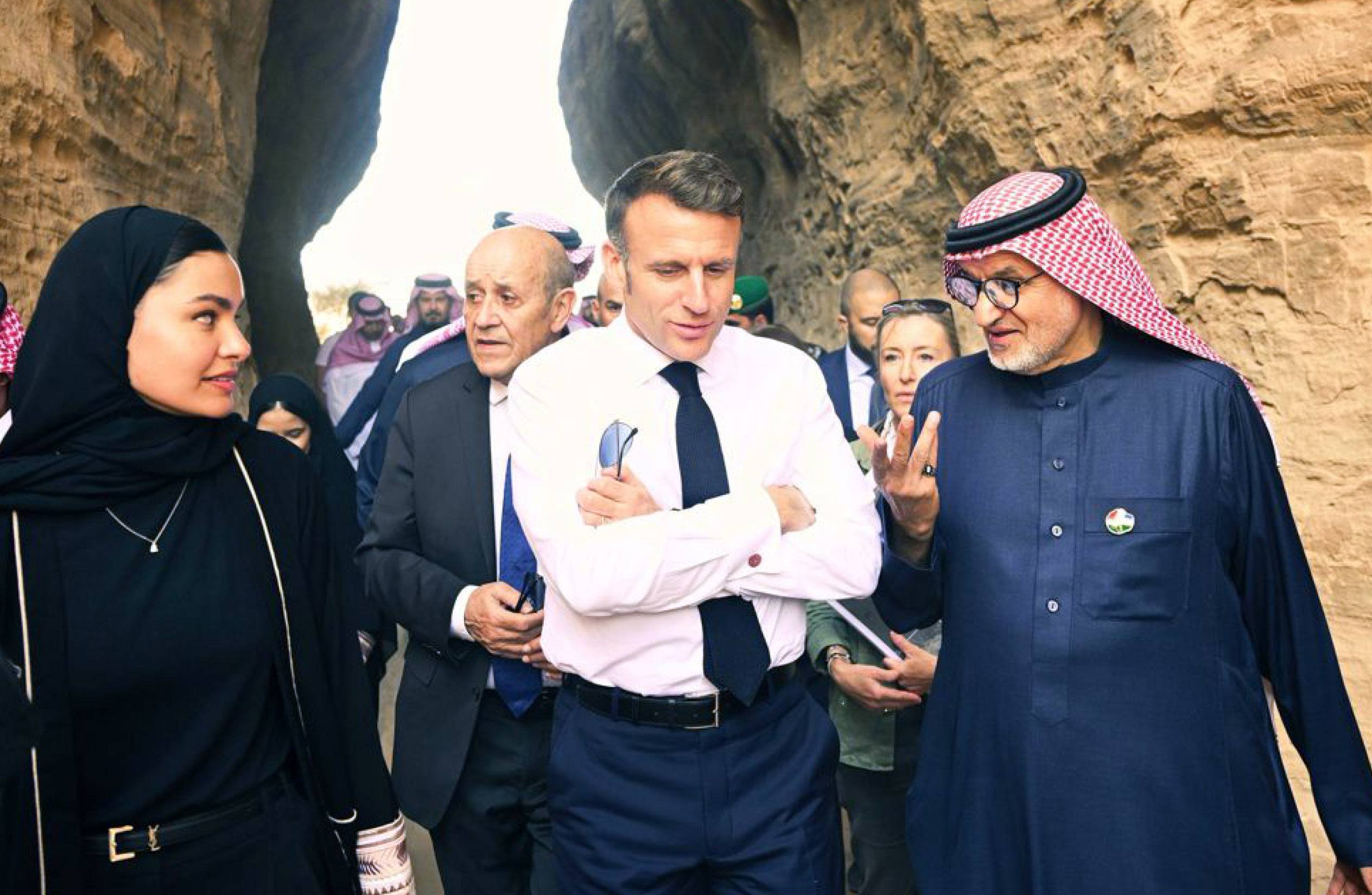 日(周三),费萨尔国王学术与伊斯兰研究中心文化顾问苏莱曼·扎伊卜陪同法国总统埃马纽埃尔·马克龙参观哈吉尔历史遗址,向其介绍当地的历史遗迹。