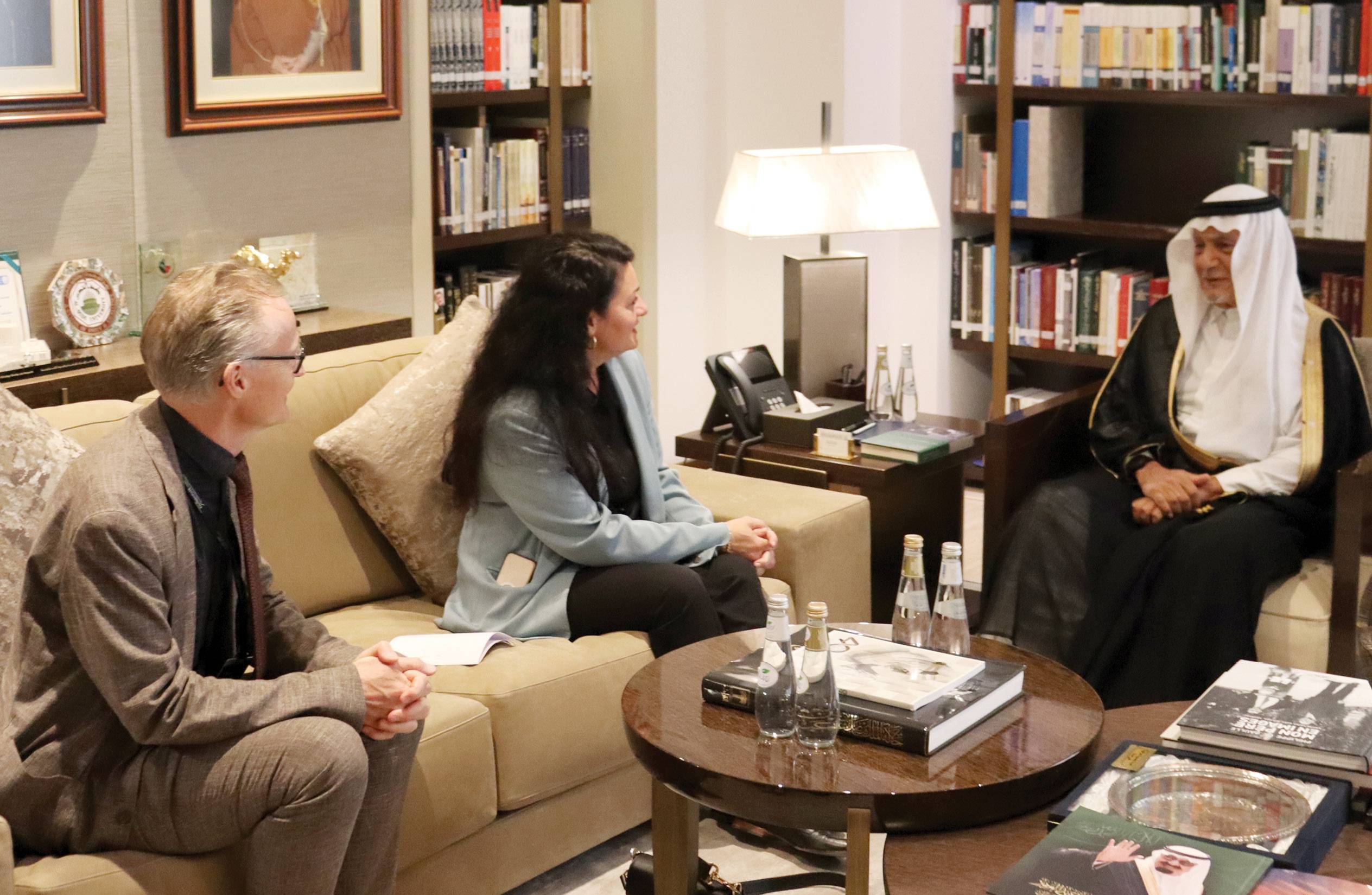费萨尔亲王在其办公室会见德国联邦议会议员拉米娅·卡杜尔、德国驻沙特大使米夏埃尔·金德斯格拉布。