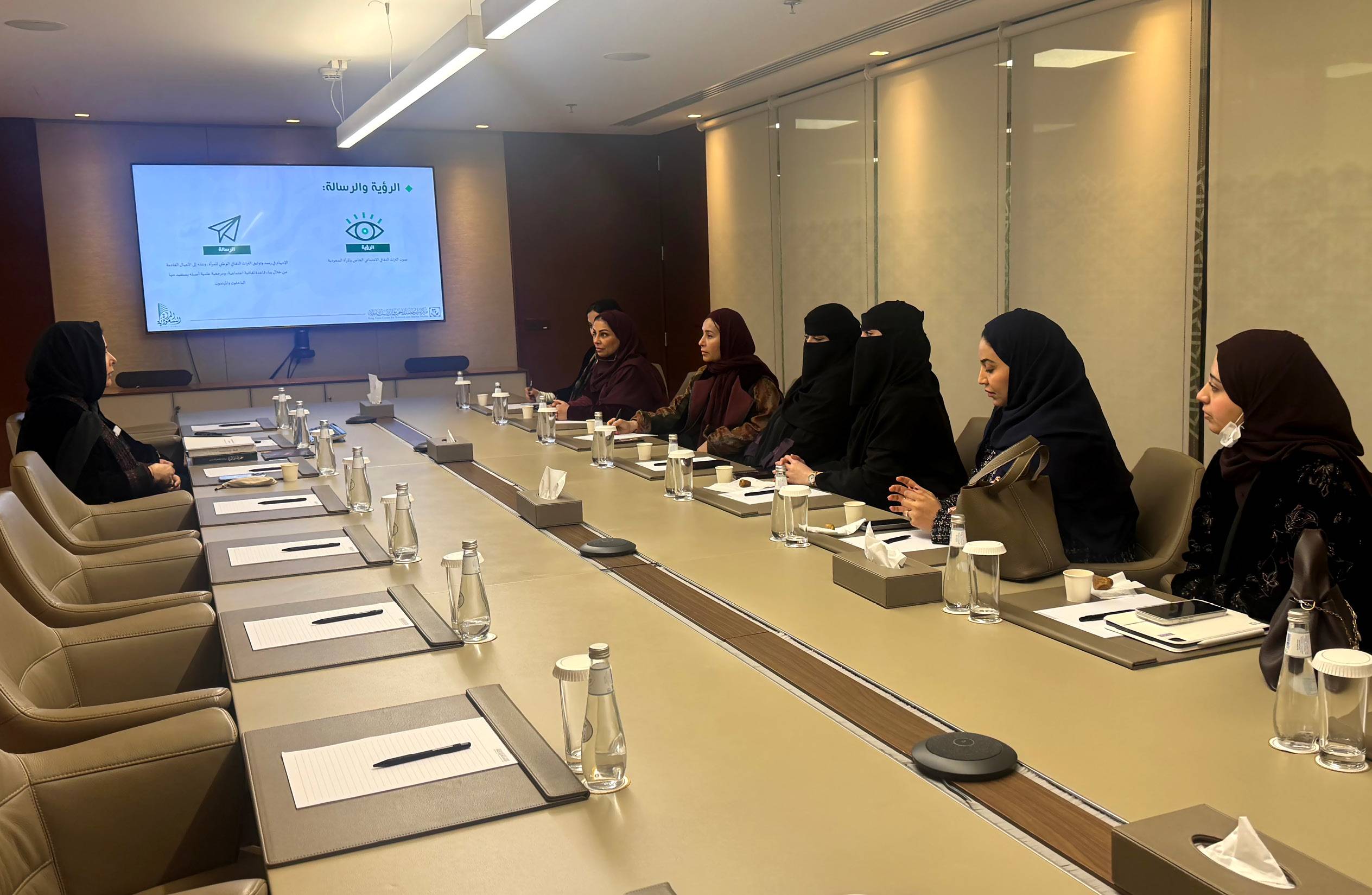 The delegation was headed by Dr. Iman bint Abdul Rahman Al-Khayal, a faculty member at the university. During the visit, the group was introduced to the program’s academic vision, its research themes, and the mechanisms used to document and analyze materials related to Saudi women, as an integral component of the Kingdom’s social and cultural history.