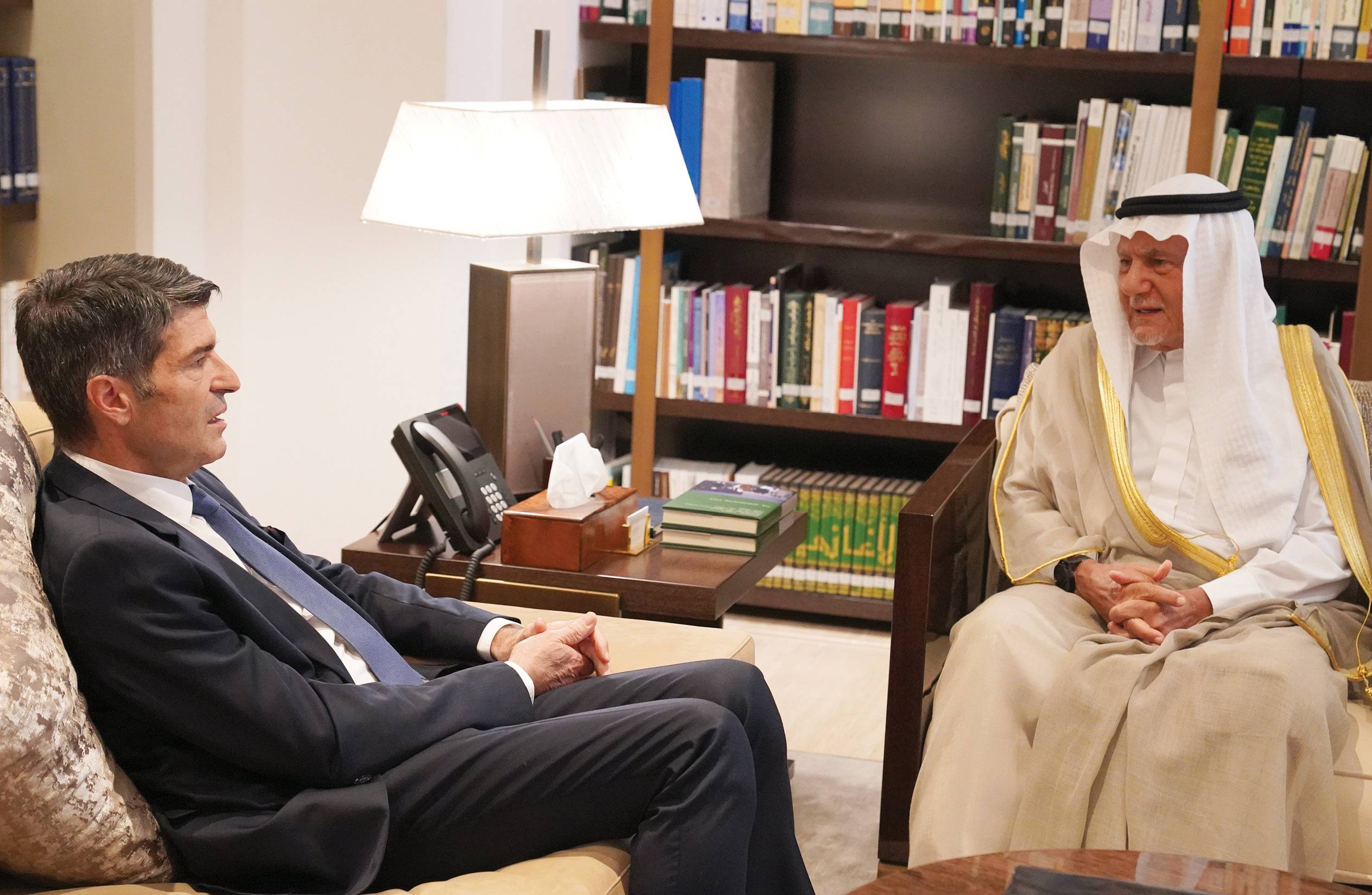 The Chairman of the Board of Directors of the KFCRIS, HRH Prince Turki AlFaisal, received at his office HE the Ambassador of France to the Kingdom of Saudi Arabia, Patrick Maisonnave.