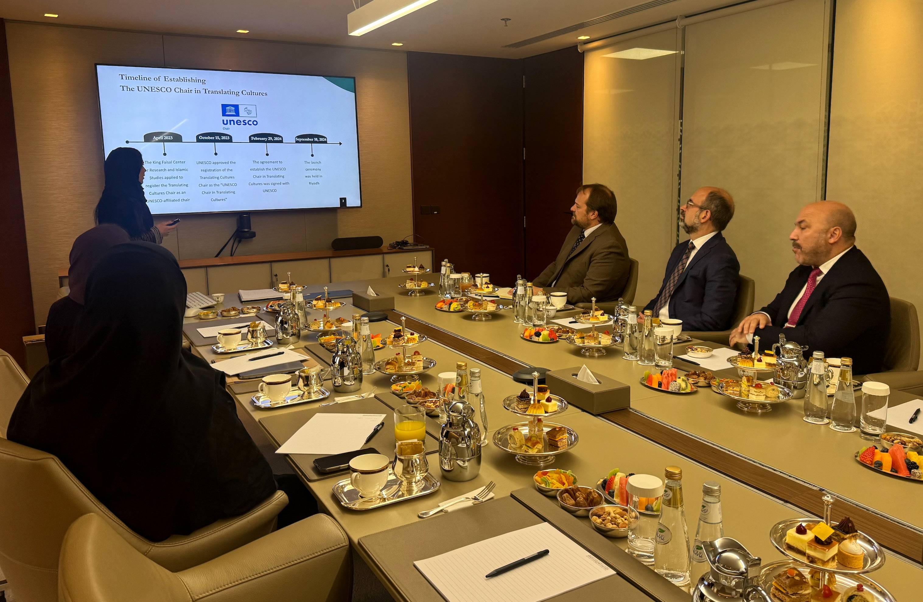 On February 2, 2026, the UNESCO Chair in Translating Cultures at the King Faisal Center for Research and Islamic Studies (KFCRIS), supported by the Literature, Publishing and Translation Commission, hosted Professor Jonathan Smolin, Professor Tarek El-Ariss, and Mr. Joshua Cuscaden of Dartmouth College at the King Faisal Center for Research and Islamic Studies in Riyadh. The visit came at a moment of deepening collaboration between Dartmouth College and the UNESCO Chair, as efforts to establish a formal partnership between the two institutions continue and as Dartmouth expands the new Dartmouth Initiative for Middle East Exchange (DIMEX), a pilot endeavor with a mission to support research and collaboration between academic disciplines and across national borders.