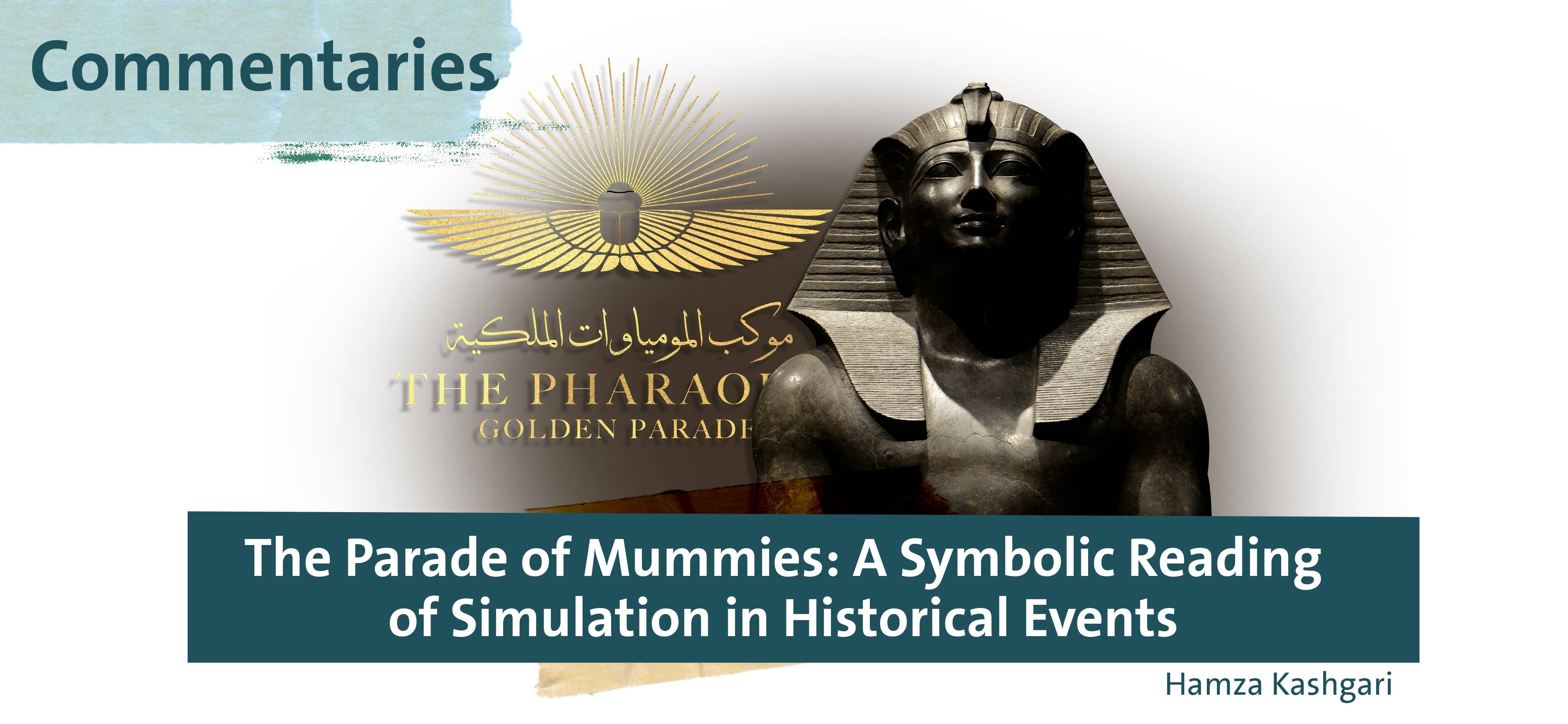 On April 3, 2021, twenty-two royal mummies were transferred from the Egyptian National Museum in central Cairo to the National Museum of Egyptian Civilization in eastern Cairo. According to an official of the Egyptian Ministry of Tourism and Antiquities, an attempt to emulate the past “just as it was in the age of the pharaohs” was made in order to capture the significance of the event. To accomplish this aim, an emblem of religious signification was designed, as were a number of other symbols, both ancient and religious or mythological. The symbols contained references to actual archaeological artifacts, without which the simulation would be empty. Religious rituals and hymns were recomposed, costumes reproduced, and pieces of jewelry and military chariots refashioned. The simulation of the parade of mummies sought not only to resurrect the past, however, but to leverage a symbolic connection into the present as well, following the theory of Jean Baudrillard, albeit in a modern context.